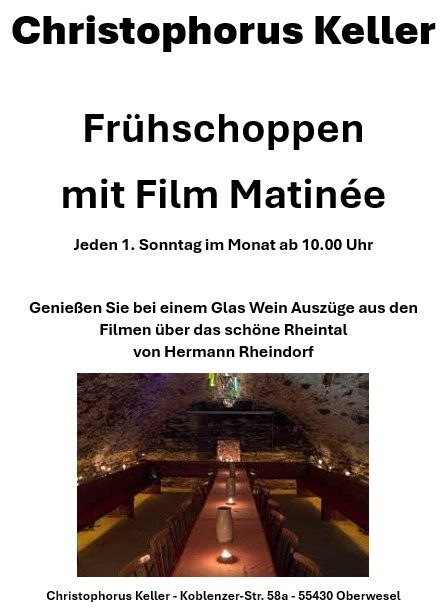 Genießen Sie bei einem Glas Wein Auszüge aus den Filmen über das schöne Rheintal von Hermann Rheindorf